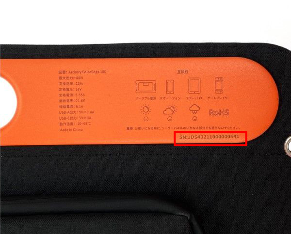 Jackeryポータブル電源のシリアル番号は、本体の背面、底面、または製品ラベル(QRコード)に記載されています。